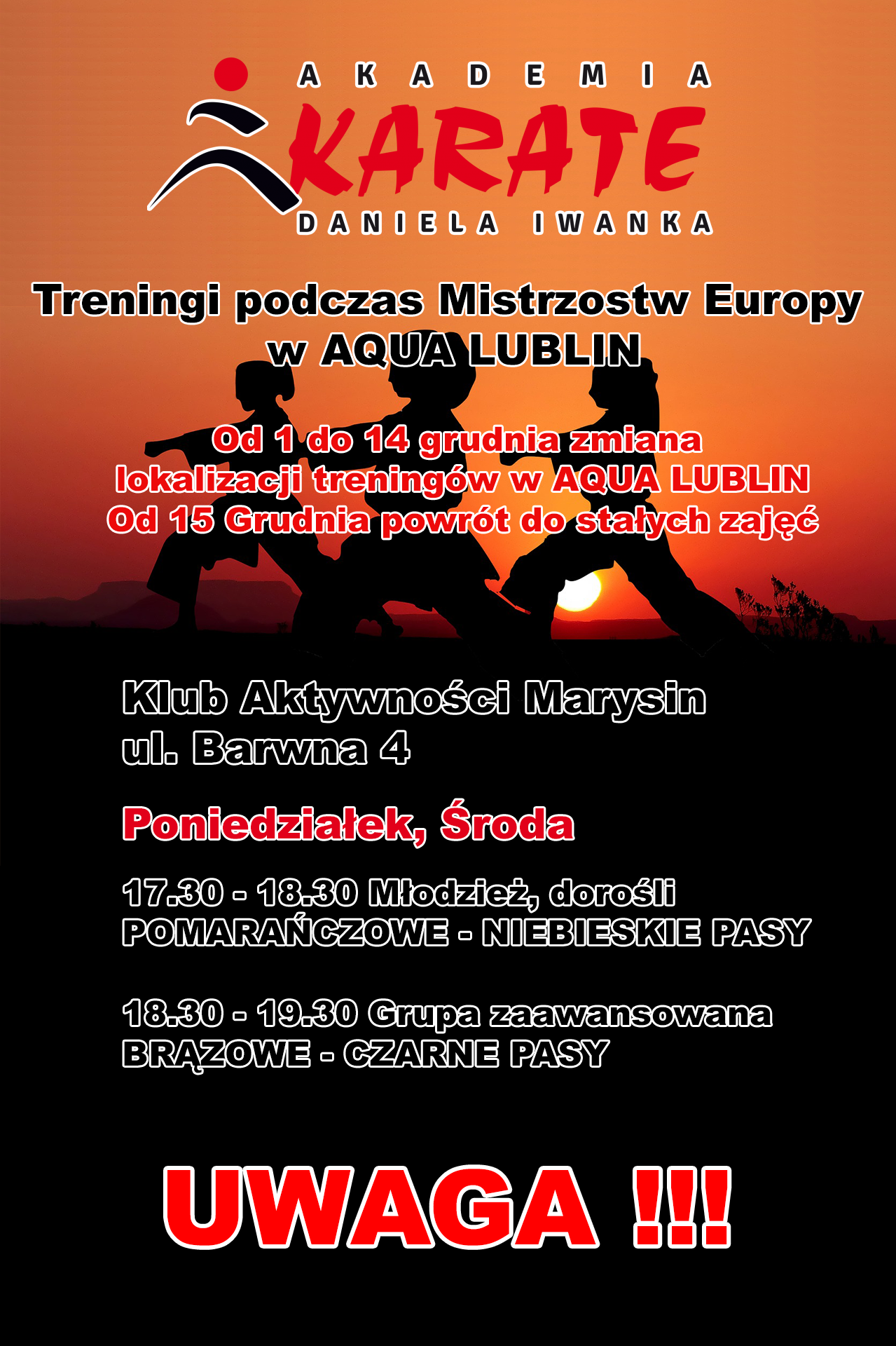 Zmiana lokalizacji treningów w dniach 1-14 Grudnia dla group z AQUA Lublin