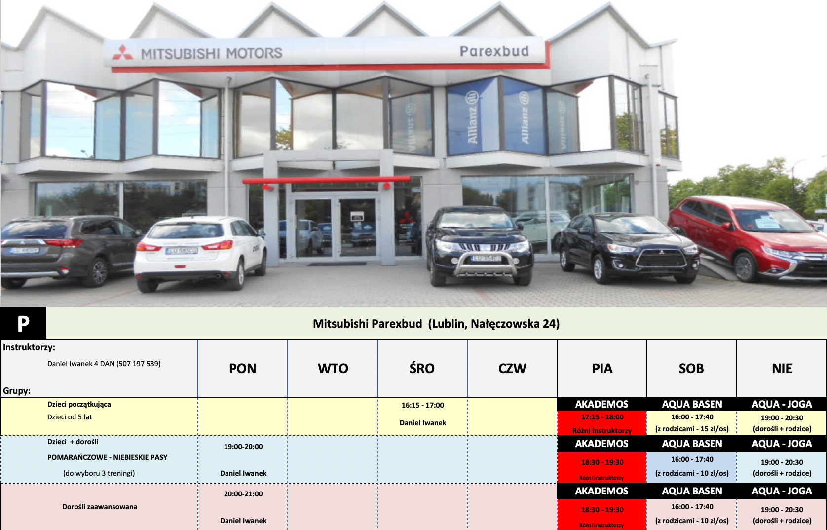 Z uwagi na panującą pandemię COVID-19 zajęcia w Piątki, Soboty i Niedziele mogą być wstrzymane – proszę o kontakt z instruktorem w celu uzyskania aktualnych informacji. Dodatkowo część grup została przeniesiona do innych lokalizacji.