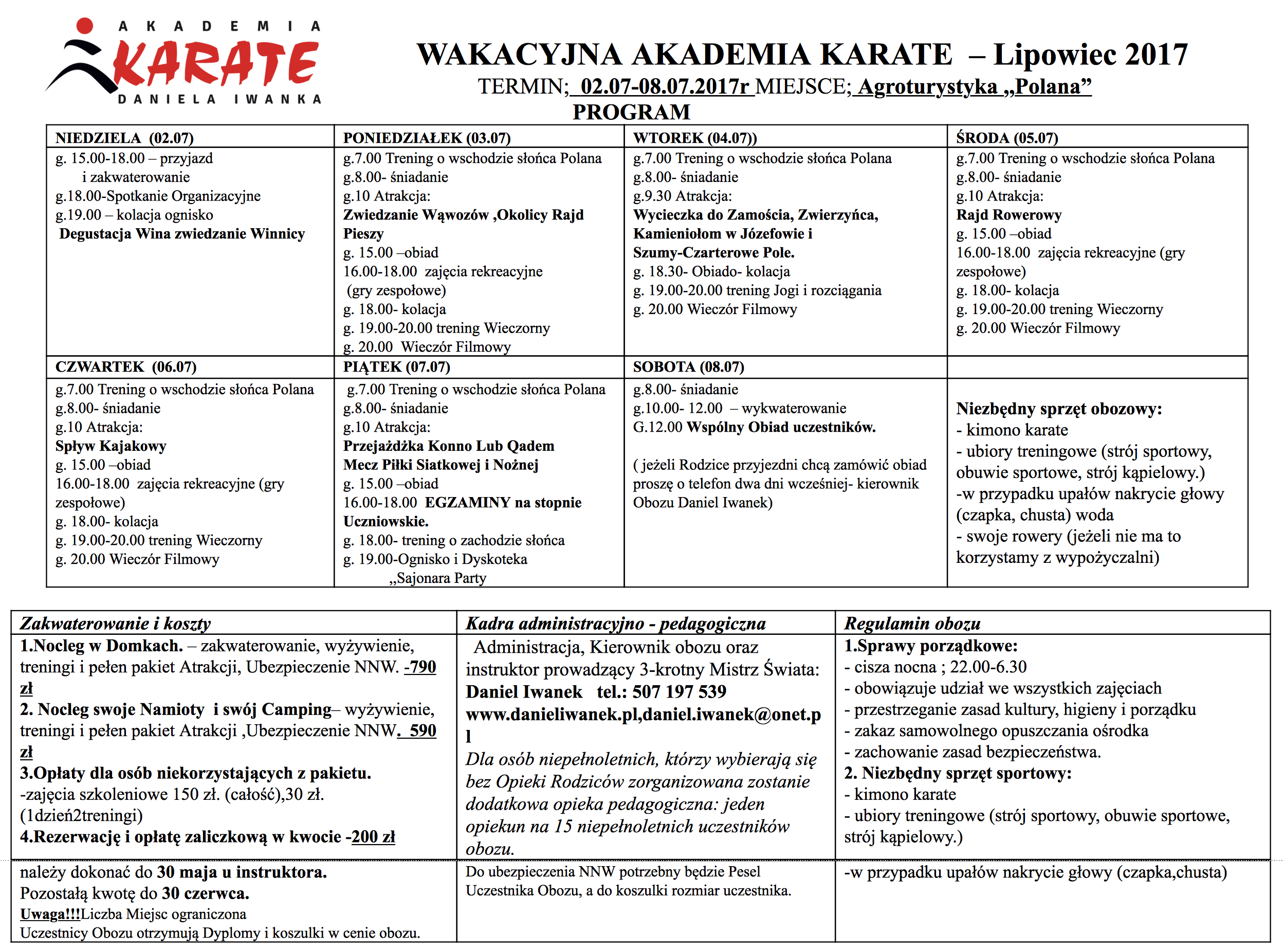WAKACYJNA AKADEMIA KARATE – Lipowiec 2017